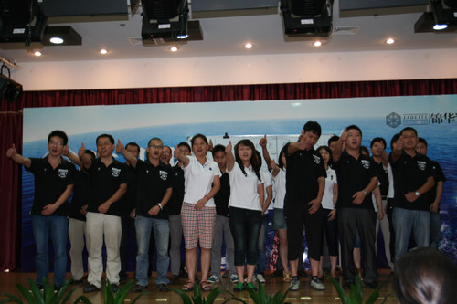 這次股東大會上,錦華的金牌培訓師——主材部曹總,給大家?guī)砹巳齻€拓展游戲:五張撲克大小PK、模仿不走樣、數(shù)數(shù)字;帶來現(xiàn)場歡樂的同時,讓所有的人都學會反思和總結;團隊的精神得到充分的體現(xiàn)?;窗卜止镜氖袌鼋浝硗踔静ㄕf,“在南京大區(qū),感受到了溫暖,有了回家的感覺。”這就是集體精神的魅力所在。
