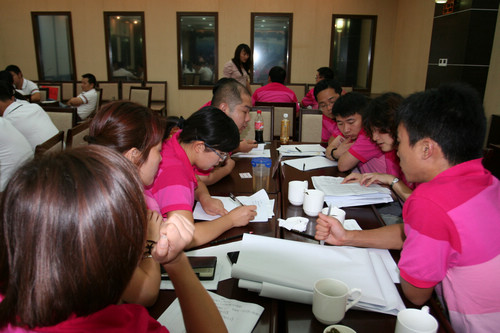 五心隊在進行分組討論